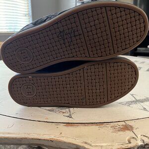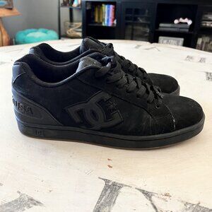 Classic DC skate shoes featuring a sleek all-black design with durable leather and suede construction. The low-top silhouette offers maximum flexibility and comfort with padded collar and cushioned insole. These versatile sneakers showcase the iconic DC logo on the side, perfect for both skating and casual wear. #StreetStyle #SkateLife #ClassicSneakers DC Size 9