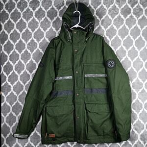 DC Snowboard Jacket Men 2XL Green Hooded 20K Waterproof Powder Skirt