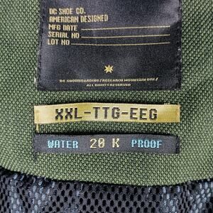 Labels/markings: "DC Shoe Co. American Designed"; size tag reads "XXL-TTG-EEG"; waterproofing tag reads "WATER 20K PROOF"