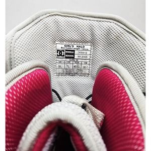 Get ready for the winter season with these brand new DC Snowboots Halo in women's size US 9L. These boots are perfect for skiing and snowboarding, and will keep your feet warm and comfortable all day long. Made by a trusted brand, these boots are built to last and will provide you with the support you need on the slopes. With their sleek design and high-quality construction, these boots are a must-have for any winter sports enthusiast. They come in an open box, ready for you to hit the slopes and enjoy your day out in the snow. Don't miss out on this opportunity to get a great deal on a brand new pair of snowboard boots!