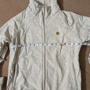 Well taken care of and in good used condition. There's some discoloration just near the thumb holes, and where the pit zip closes (not visible when zip is closed or when you're wearing the jacket). Otherwise no visible imperfections. See photos.