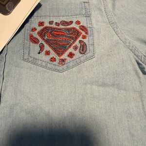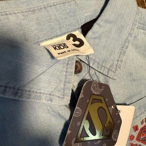 3T / 2-4 Set of two Batman graphic t-shirts from H&M. One features a black and gray design, the other a black and yellow design. As well as one Brand new Cotton on Kids Superman button up. Perfect for superhero fans. 4 Piece Bundle