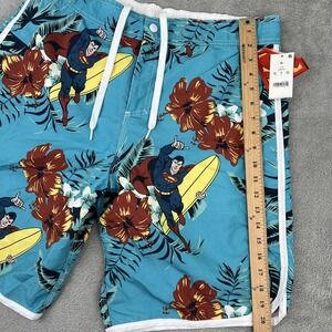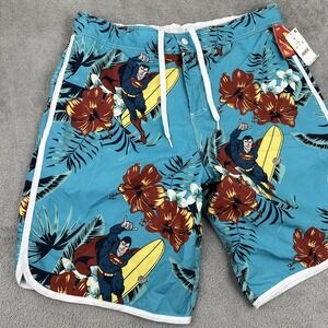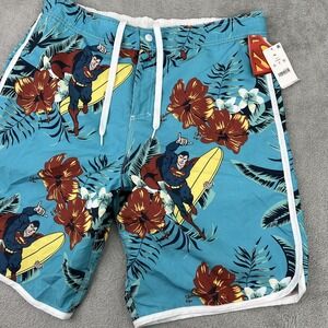 DC Superman Blue Hawaii Floral Superman Swim Trunks Men's XL 36 Shorts Pockets