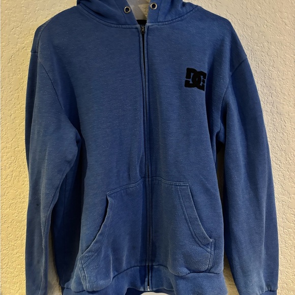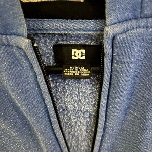 DC jacket in indigo with a cozy fleece lining. Features a zip-up front.