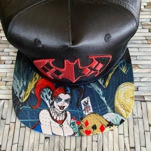 NWOT Harley Quinn snap back baseball hat. Satin/smooth material. Bought for my son and he never used or wore it.