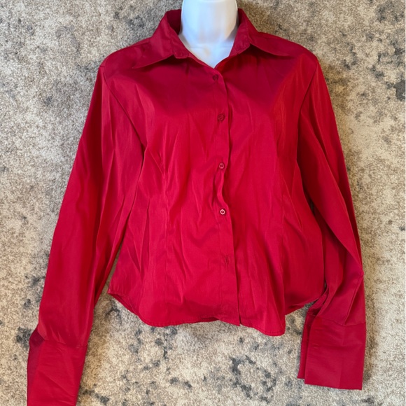 Stylish red button-up shirt. Perfect for any occasion.