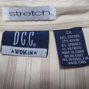 DCC Woman Stretch top tan V neck button down 3/4 sleeve blouse like new size 2x