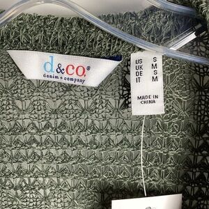 D&CO NWT Open front Knit Cardigan Size Small green/ Tan.