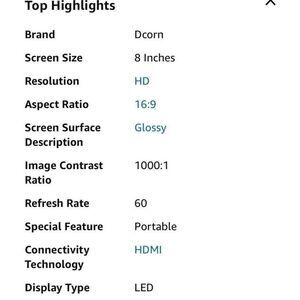 DCORN - 🎉HPX6 🎉 NWT - 8” HD82 Color Monitor- Metal Frame/1280 x 720/ Boxed