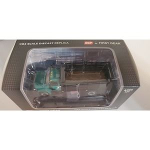 First Gear/ DCP 1973 Chevy C65 single axle stake bed truck. Truck has green cab and black bed. Has the extra mirrors inside. New condition.