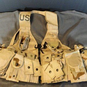 DCU DESERT CAMOUFLAGE FLC MILITARY COMBAT VEST FULLY LOADED W/POUCHES FIELD LOAD CARRYING VEST
