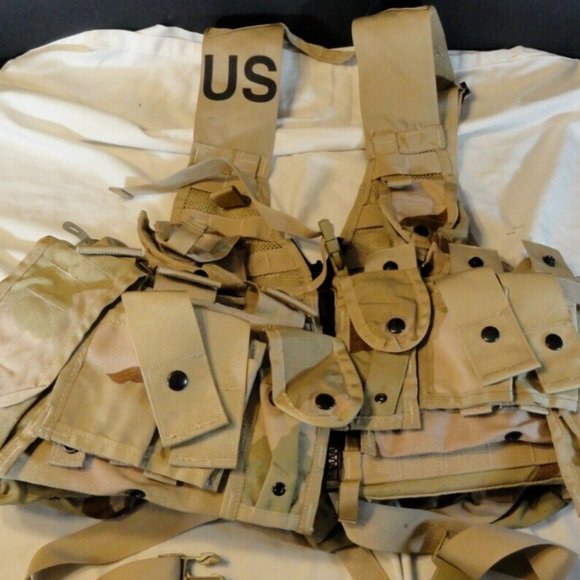 DCU DESERT CAMOUFLAGE FLC LBE LBV LOAD BEARING VEST W/ COMBAT TACTICAL POUCHES