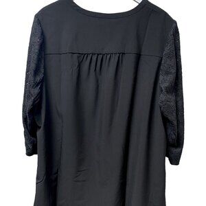 D&Co. Black Blouse Plus Size 2X Lace sleeve Stretch Womens Tunic Top NWOT