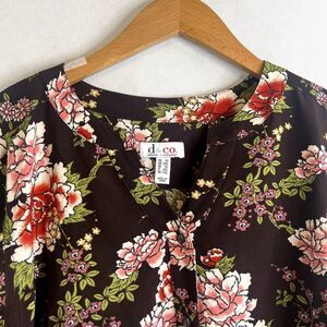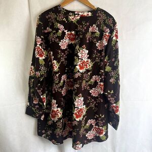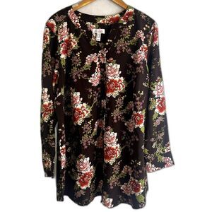 D&Co Brown Floral Long Sleeve Blouse Plus Size 1X