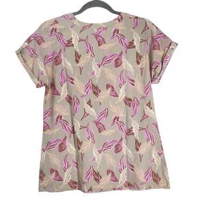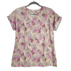 D&Co. Brown Knit Button-up Top and Tan and Pink Leaf Print Tee Size Small Bundle