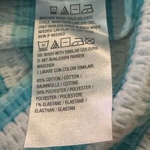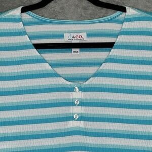 D&Co Denim & Co XL Shirt Top Blue Striped Short Sleeve V Neck Cotton Stretch