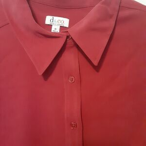 This D&Co Denim & Company women's shirt top is a must-have for any wardrobe. With a solid red color and collared neckline, it's perfect for a variety of occasions, including travel, casual outings, and business meetings. The long sleeves and button closure make it a versatile piece that can be dressed up or down.