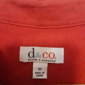 D&Co Denim & Company Womens 3X Shirt Red Solid Button Up Long Sleeve Moleskin