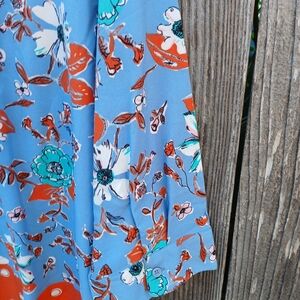 Add a pop of color to your wardrobe with this D.Co floral blouse. Featuring a vibrant blue and orange design, it's perfect for any occasion. Enjoy the stylish fit and eye-catching pattern.