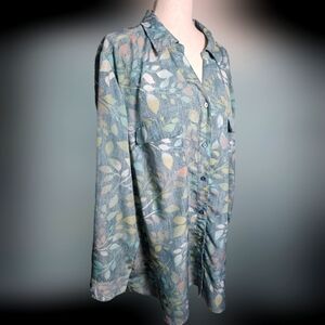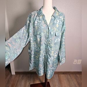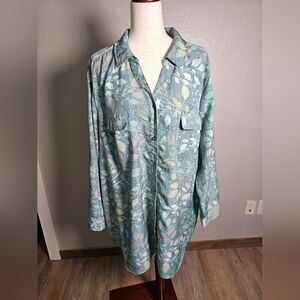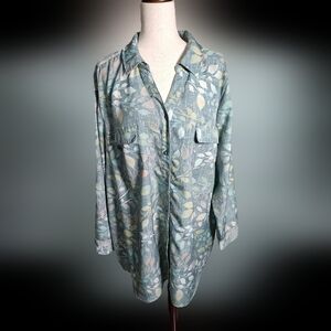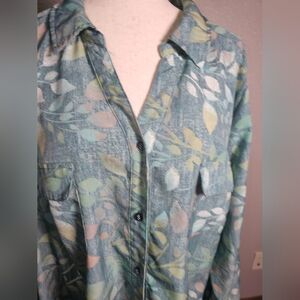 D&Co Plus Size Button Up Luxurious Feeling Top Size 3x Thick Material Leaf Prin