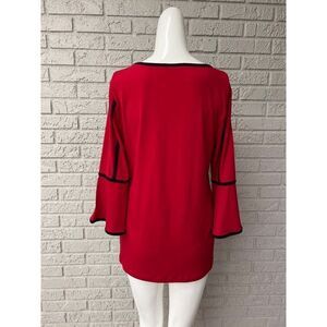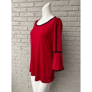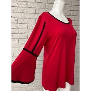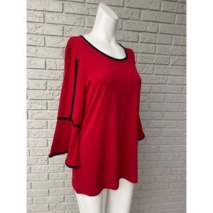 D&Co. Red With Contrast Trim Bell Sleeve Top Size S