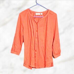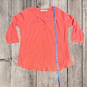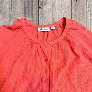 D&Co Tunic Top Peach Pink Long Sleeve Button Up Crinkle Texture Shirt size XS