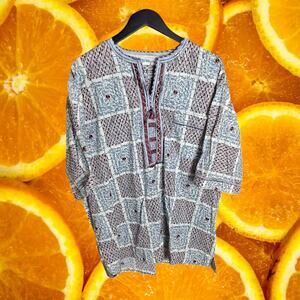 D.D. Africa Women's Geometric Embroidered Short Sleeve Blouse Size