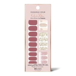These rose strips with fun geometric lines and a touch of sparkle will make you the center of attention. Be your own at-home nail artist. Each palette features a full set of base color gel nail strips and a curated selection of accent nail strips to take your nail art game to the next level! Mix and match your mani in minutes with no UV dry time and no soak-off removal. Dashing Diva GLOSS Ultra Shine Gel Palette creates a customized gel manicure that lasts up to 14 days.