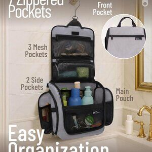 About this item Efficient Organization: Our hanging travel toiletry bag is designed with 10 compartments, allowing you to neatly store and easily access your cosmetics, makeup, and toiletries. Stay organized on the go! Premium Quality: Made with water-resistant nylon and equipped with quality zippers, our toiletry bag ensures durability and long-lasting use. It can withstand any travel adventure. Water-resistant Design: Made with high-quality materials, this bag is water-resistant, protecting your belongings fro