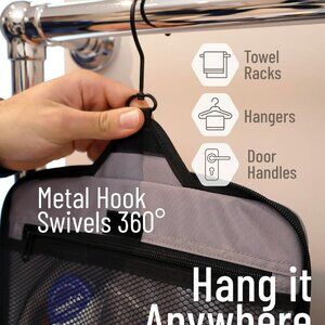 Convenient Hanging Hook: The XXL metal swivel hook allows you to hang the bag anywhere, saving valuable counter space. It's perfect for use in hotels, bathrooms, or even on a camping trip.