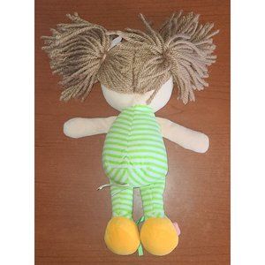 DD Trader Activity Doll Plush Brunette Yarn Hair Striped Romper Soft Stuffed 12"