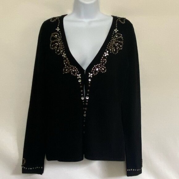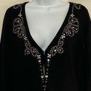 DD-70 BCBG MaxAzria NWT Black Beaded & Rhinestone Long Sleeve Cardigan Size M