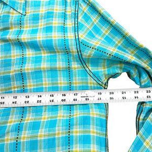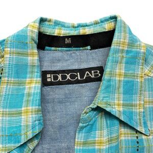 DDC Lab Button Down Shirt Mens Medium Plaid Blue Mustard White