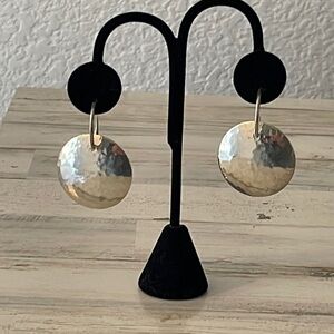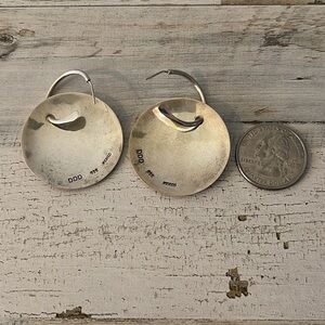 925 Silver Hoop Earrings with Hammered Disc Drop. In excellent, gently used condition. Stamped DDD, 925, Mexico. Shadowing is from camera. See pictures for sizing.