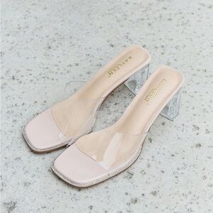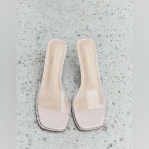 This beautiful mule is designed to enhance your overall look and add a touch of elegance to any outfit. This heel features a clear strap that gracefully wraps around the foot, creating a minimalist yet eye-catching aesthetic. The transparent strap not only adds a modern twist but also provides a secure fit, allowing you to confidently stride with every step. The clear block heel of this mule serves as a true statement piece. With its transparent design, it creates the illusion of height while maintaining stability and support. The block heel offers a comfortable and balanced foundation, ensuring that you can wear these mules for extended periods without any discomfort. The nude color palette of these mules adds versatility to your wardrobe.