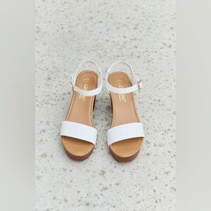 These exquisite heels combine the timeless appeal of clog-style wooden platforms with the sleek sophistication of white straps, creating a unique fusion of fashion-forward design and comfort. These heels feature a sturdy wooden platform clog strap that not only adds height but also provides excellent stability and support. The wooden construction showcases the natural beauty of the material, creating a warm and earthy aesthetic that effortlessly complements any outfit. The white straps, delicately crisscrossed over the foot, add a contemporary flair to these heels. Made from high-quality, durable materials, they ensure a secure and comfortable fit, allowing you to confidently step out in style for any occasion.