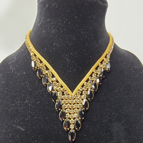 Absolutely Stunning Vintage DeLizza & Elster Juliana Necklace! So very elegant with amazing light reflecting sparkles! Just small movements sets this necklace into brillant flashes of light. The closure is adjustable, framing the piece is a mesh designed chain. It is in excellent condition.