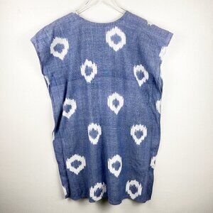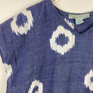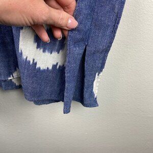 Color: Blue denim Ikat print