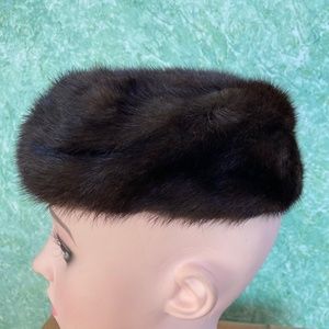 DE LUCA vintage brown fur hat with two attached combs #6649
