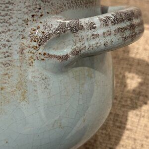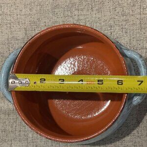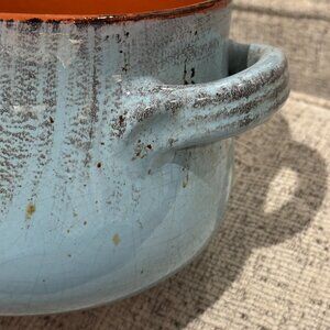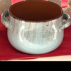 DE SILVA Double Handled Soup Bowl - Blue Terracotta Pottery Crocks 1970s Italy