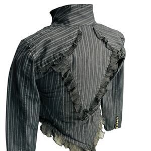 DEAD THREADS Womens Gothic Pinstripe Jacket Sz L Steampunk Vampcore Costume Y2K