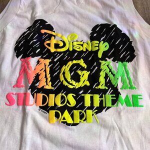 DEADSTOCK Disney MGM Studios Theme Park Neon Black White Mickey Head Tank Top La
