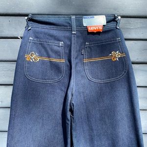 Deadstock flare Levi’s with adorable flower + butterfly decal on back