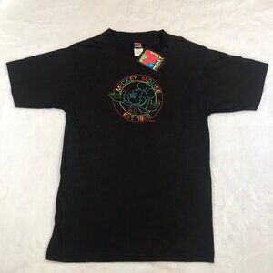 DEADSTOCK Mickey Unlimited Black Shirt with Rainbow Multi Color Embroidery size Large