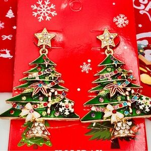 🎄DEAL Festive Enamel CZ Christmas Tree Dangle Fishhook Drop Christmas Earrings