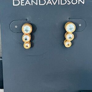 DEAN DAVIDSON 22K Gold Plated Manhattan Blue Topaz Ear Crawler Earrings, NWT