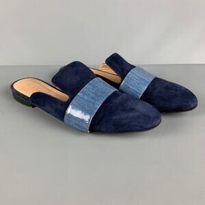 DEAR FRANCES Size 8 Blue Navy Suede Mixed Materials Slide Flats