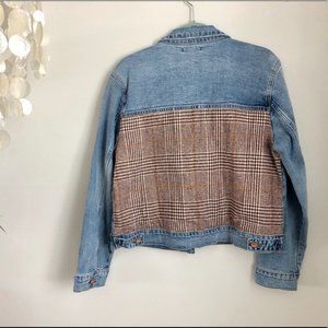 DEAR JOHN PLAID BACK JEAN JACKET - SIZE MEDIUM