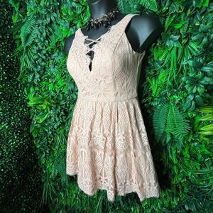Dear Moon Women Size 7 Peach Orange Dress Formal Short V Neck Prom Party