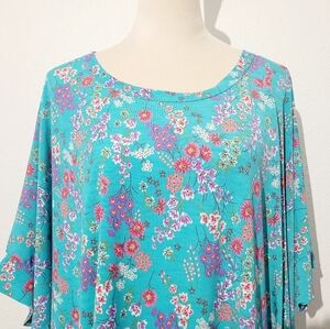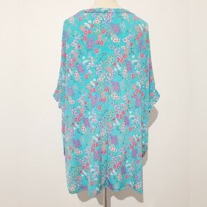 DEAR SCARLETT Women's Floral Tunic Blouse Oversized Turquoise Size XL